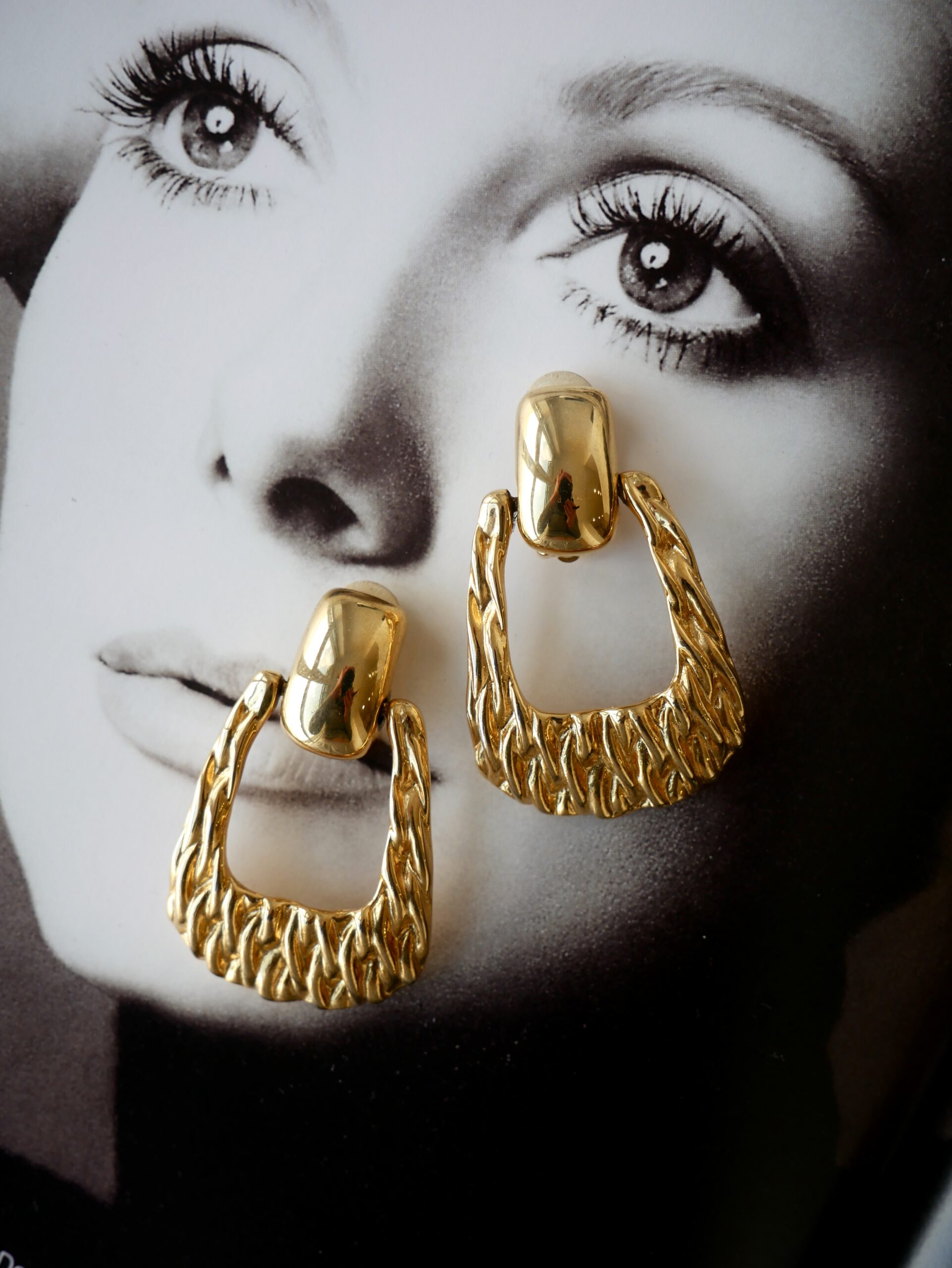 Ефектні вінтажні кліпси Anne Klein у насиченому золотистому відтінку – втілення класики 1980-х у стилі Door Knocker (англ. “дверне кільце”).